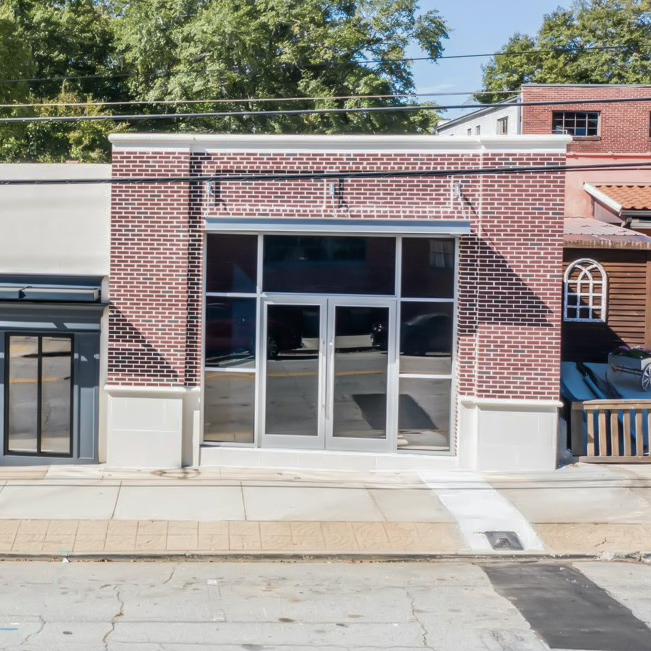 Owner will be responsible for a new storefront like the design shown on the right. Design concept and floorplan available in the download links below. Owner will also be responsible for a new roof. The tenant will be responsible for their own buildout: all their own electrical, framing, equipment, and finishes. Owner will credit the tenant for two bathrooms in buildout.